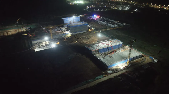 走進施工現場,吊機、挖掘機等設備轟鳴不斷,工人師傅們佩戴安全設施在樓棟間進行作業,項目施工現場所有單體建筑都在緊鑼密鼓的施工中,項目施工現場一片忙碌的景象。截至目前,項目東側孵化中心二號樓已經完成封頂,孵化中心一號樓已完成三層頂板施工,創新平臺組團也在進行鋼筋綁扎和頂板混凝土施工澆筑,宿舍樓3、宿舍樓4已完成基礎施工。