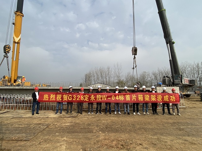 G328項目起點位于定遠縣城北,接北京西路,向西經城北水庫北側、解放水庫北側、西卅店南側、在永康鎮南側上跨G3京臺高速公路,終點接永康鎮西側G328(原S334)彎道,全長33.668公里。為確保首片梁架設任務順利完成,項目部超前謀劃,科學組織,制定了詳細的施工組織計劃,現場員工各司其職,持續奮戰,在確保梁體安全運輸的基礎上更加快了架設進度。