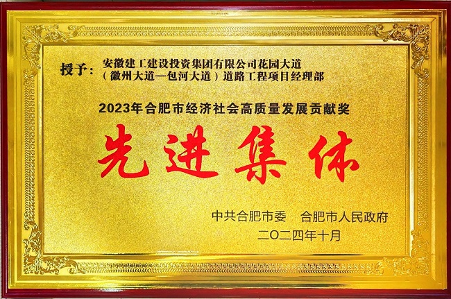 近日,“2023年合肥市經濟社會高質量發展貢獻獎”名單公布,建工建投集團花園大道(徽州大道-包河大道)道路工程項目經理部被中共合肥市委、合肥市人民政府授予“2023年合肥市經濟社會高質量發展貢獻獎(城市建設管理)先進集體”稱號。