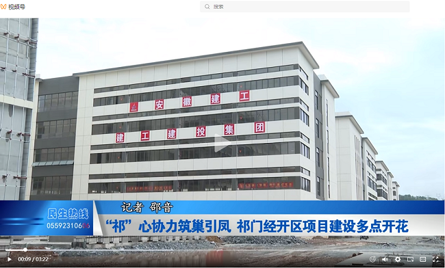 11月28日,黃山新聞網、黃山民生熱線視頻號以《“祁”心協力筑巢引鳳 祁門經開區項目建設多點開花》為題,報道建工建投集團祁門低碳科創園項目即將交付運營。