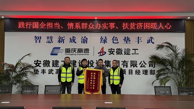 近日,重慶市武隆區(qū)火爐鎮(zhèn)人民政府給送來一面印有“情系群眾辦實事,扶貧濟(jì)困暖人心”的錦旗,感謝建工建投集團(tuán)重慶墊豐武高速TJ09標(biāo)項目在助力地方發(fā)展方面做出的努力。