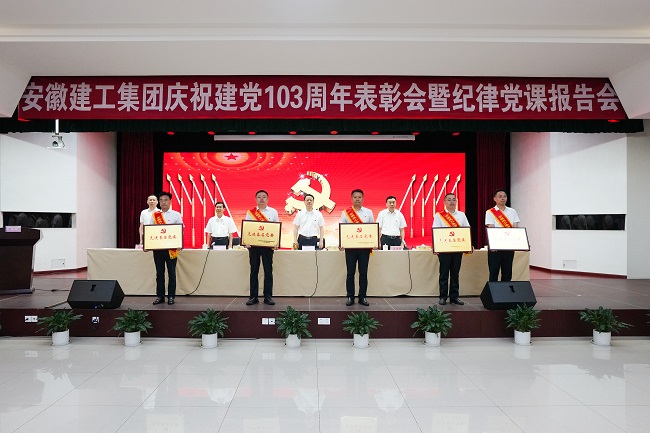 7月3日上午,安徽建工集團黨委召開慶祝建黨103周年表彰會暨紀律黨課報告會。黨委書記、董事長楊善斌出席會議并作題為《以黨紀學習教育縱深推進全面從嚴管黨治黨 為集團轉型發展高質量發展大發展提供堅強紀律保障》的紀律黨課報告。