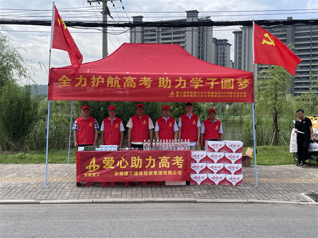 望江安建交通建設管理有限公司、望江安建安九公路建設有限公司在望江縣第三中學志愿點熱情地忙碌著,他們為考生準備了礦泉水,在考點門口維持秩序、引導考生入場,助力學子們安心應考。