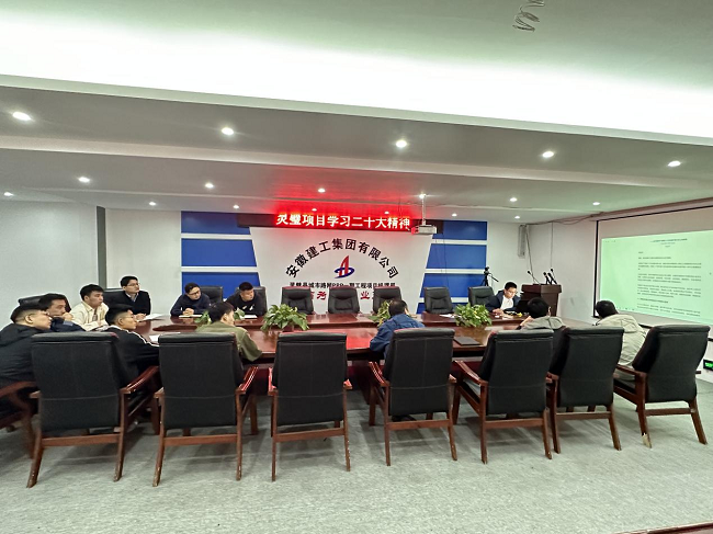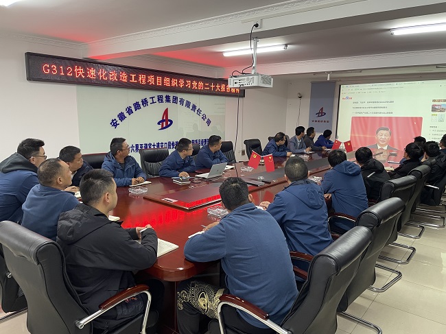 六安G312快速路項目召開黨的二十大精神學習宣貫會。會議要求,項目全體職工要堅持以黨的二十大精神為指引,把黨的二十大報告的新部署、新要求、新觀點轉化為具體工作舉措。圍繞項目建設工作,提煉特色做法,打造亮點工程,以實干實績實效向六安市民交出滿意答卷。