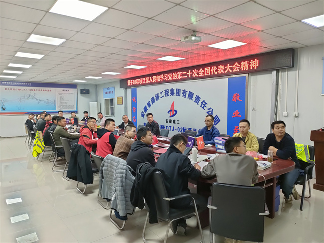 11月初,四分公司黨總支以視頻連線方式對學習宣傳貫徹黨的二十大精神作出具體部署。會議要求,分公司上下要全面系統深入的學,要原原本本、原汁原味的學,要把學習貫徹黨的二十大精神與實際工作相結合,積極主動作為、迎難而上、全力以赴為今年順利收官、明年穩步開局夯實基礎。會后,分公司領導第一時間赴項目對二十大精神展開宣貫。