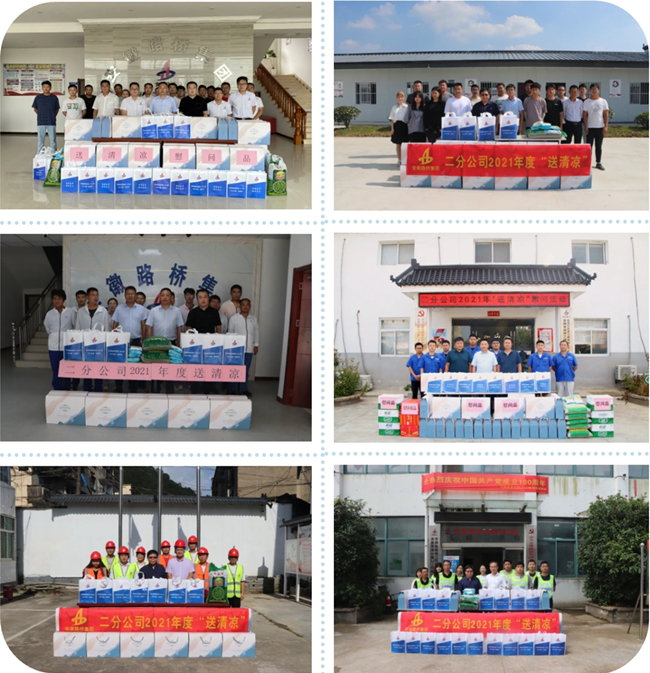 炎炎夏日送清涼,絲絲關愛入心田。為切實做好職工防暑降溫工作,關愛一線職工的健康安全。7月27日至8月6日,二分公司開展2021年夏季“送清涼”慰問活動,為所屬各項目送去清涼與關愛。