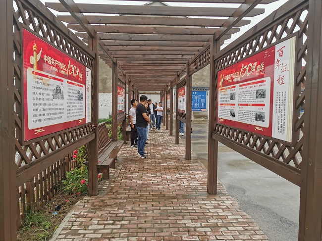 打造黨史長廊,營造濃厚氛圍。項目黨支部利用文化宣傳長廊,打造黨史學習教育新陣地,文化長廊展示了中國共產黨輝煌歷程,濃縮了中國共產黨人艱苦創業、繼往開來的豐功偉績,為職工提供了學習黨史的學習平臺,成為項目部一道亮麗風景線。