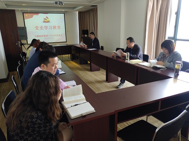 根據公司黨委安排,三分公司黨總支迅速成立黨史學習教育領導小組,3月22日召開動員部署大會,要求分公司全體黨員充分認識開展黨史學習教育的重大意義,要把黨史學習教育作為重大政治任務和當前頭等大事來抓,堅決做到規定動作不折不扣,自選動作有聲有色,切實增強開展黨史學習教育的思想自覺、政治自覺、行動自覺。各項目黨支部紛紛召開黨史學習教育動員部署會,加強領導、認真組織,扎實開展黨史學習教育,持續掀起學習熱潮。