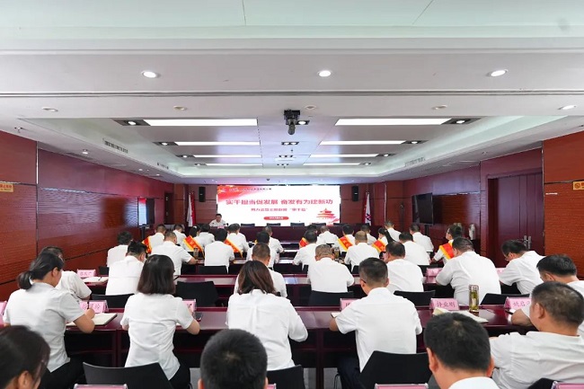 銘記崢嶸歲月,一路光輝前行。6月30日下午,公司召開慶祝建黨102周年表彰大會暨主題教育專題黨課報告會,表彰在黨的建設和生產經營工作中涌現出的一批先進基層黨組織、優秀共產黨員和優秀黨務工作者。公司黨委書記、董事長任杰以《實干擔當促發展 奮發有為建新功 用力譜寫主題教育“實干篇”》為題,講授主題教育專題黨課,進一步弘揚建黨精神、激勵全體員工擔當作為奮發向上。公司黨委副書記干戈主持會議,黨委委員、副總經理、總工程師陳莘宣讀表彰決定,公司領導班子成員出席會議。