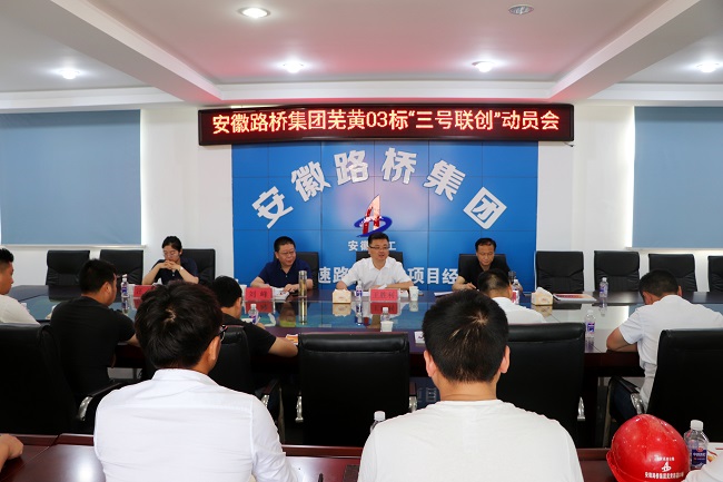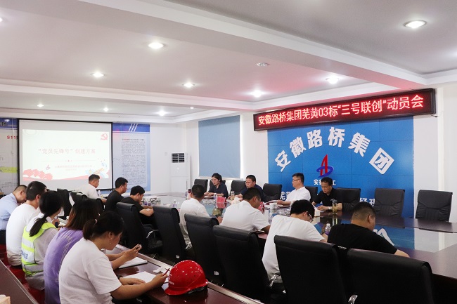 6月2日,蕪黃高速03標召開“三號聯創”動員會。公司黨委委員、紀委書記王勝利、公司工會副主席陸在銀出席會議并講話。二分公司黨總支書記劉峰主持會議。