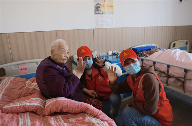 97歲的黃奶奶緊緊拉住志愿者的手,說道:“敬老院的食宿很好,謝謝你們的關心,歡迎你們經常來陪我們聊聊天。”幸福的笑容洋溢在老人們的臉上,現場其樂融融。