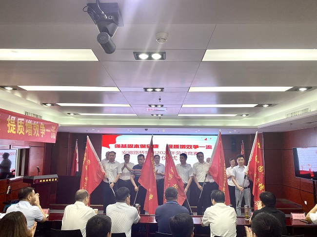 勞動(dòng)競賽啟動(dòng)儀式上,參賽單位職工代表宣誓,與會(huì)領(lǐng)導(dǎo)向參賽單位授旗,公司黨委副書記、總經(jīng)理歐陽志宜宣布安徽路橋集團(tuán)2022年“強(qiáng)基固本保安康 提質(zhì)增效爭一流”勞動(dòng)競賽正式啟動(dòng)。