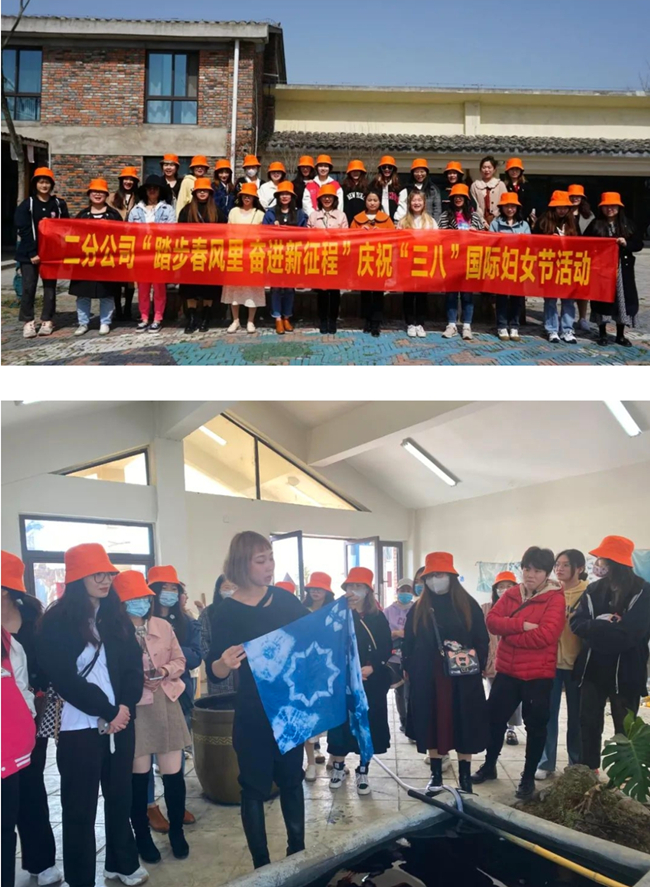 二分公司組織全體女職工赴長豐縣馬郢村開展“踏步春風里 奮進新征程”春游活動,了解新農村的變化與發展,聆聽馬郢村民的創業歷史。在現場工作人員的講解下,大家認真學習扎染技巧,動手體驗扎染操作,感受著扎染民間傳統藝術的神奇魅力。