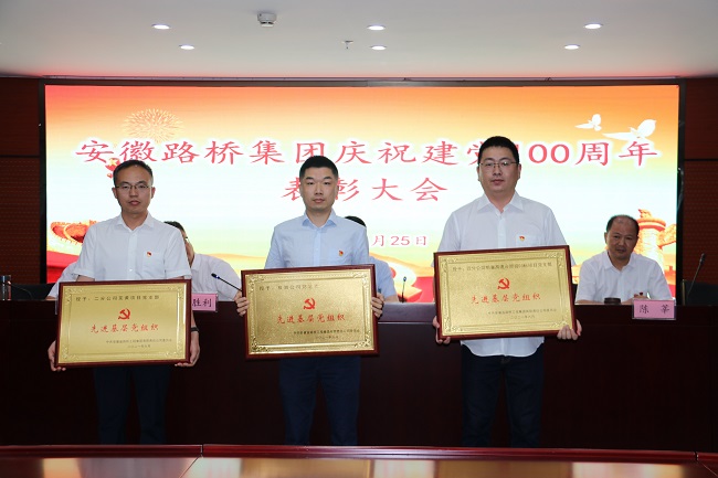 為進一步表彰先進、樹立典型、激發干勁,6月25日上午,安徽路橋集團黨委召開慶祝建黨100周年表彰大會,集中表彰了一批先進基層黨組織、優秀共產黨員和優秀黨務工作者。公司領導班子成員、子分公司黨政主要負責人、黨群部門負責人、受表彰人員及公司機關全體黨員參加會議。