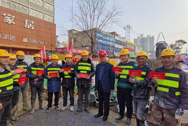 盧軍球表示,新春期間職工堅(jiān)守施工現(xiàn)場,克服困難,默默奉獻(xiàn),充分展現(xiàn)了舍“小家”,顧“大家”的家國情懷。他對堅(jiān)守崗位的職工表示感謝,并送上慰問品。同時(shí),他還要求項(xiàng)目部全體員工站好節(jié)日期間這班崗,落實(shí)好疫情防控措施,在保證施工安全及工程質(zhì)量的前提下,加快工程進(jìn)度,再接再厲,再創(chuàng)佳績。