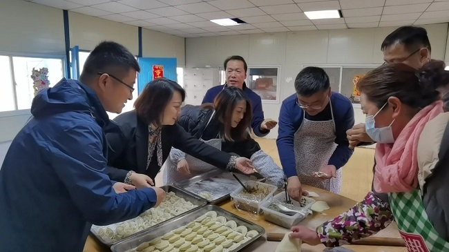 看見廚房正忙活著搟餃皮、拌餃餡,王書記也加入到包餃子的行列,把對員工和公司的美好祝愿包進(jìn)了每一只餃子里。希望他們在新的一年,繼續(xù)保持不畏艱難、銳意進(jìn)取的奮斗韌勁,以不怕苦、能吃苦的牛勁牛力,勇往直前!