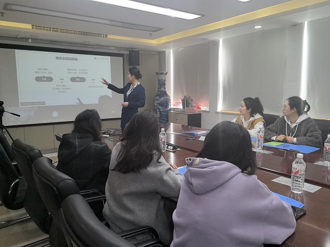 在講座中,魏艷不僅詳細(xì)講解了理論知識,還安排了豐富的實踐演練環(huán)節(jié)。現(xiàn)場的員工們積極參與,通過模擬會務(wù)接待場景,親身體驗并實踐了所學(xué)的禮儀知識。老師在每個環(huán)節(jié)都進(jìn)行了現(xiàn)場點評和指導(dǎo),幫助大家及時糾正錯誤,確保每位員工都能掌握正確的職場禮儀。