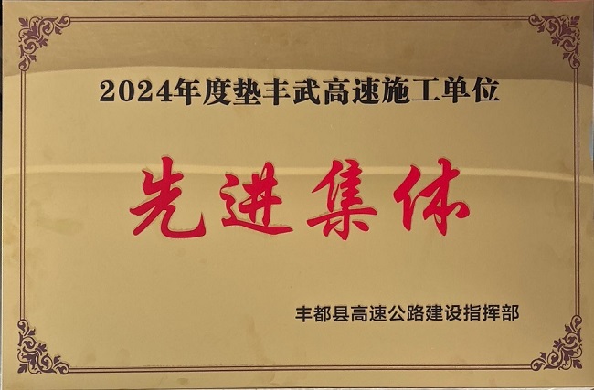 建工建投集團(tuán)重慶墊豐武高速TJ04標(biāo)項目榮獲豐都縣交通運輸委員會“先進(jìn)集體”稱號和豐都縣高速公路建設(shè)指揮部“2024年度墊豐武高速施工單位先進(jìn)集體”稱號。