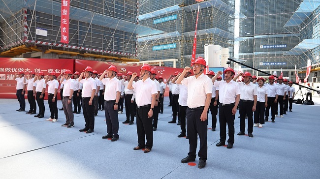 5月30日上午,建工建投集團2025年“安全生產月”活動啟動儀式暨現場觀摩會在蜀山SS11-G-05-02號地塊項目舉行。建工建投集團黨委書記、董事長任杰宣布活動正式啟動,黨委委員、副總經理孫偉作動員部署講話,并帶領全體人員進行安全宣誓。建工建投集團領導班子、機關各部門負責人、各子分公司主要負責人、分管生產安全負責人、項目經理等80余人參加儀式。
