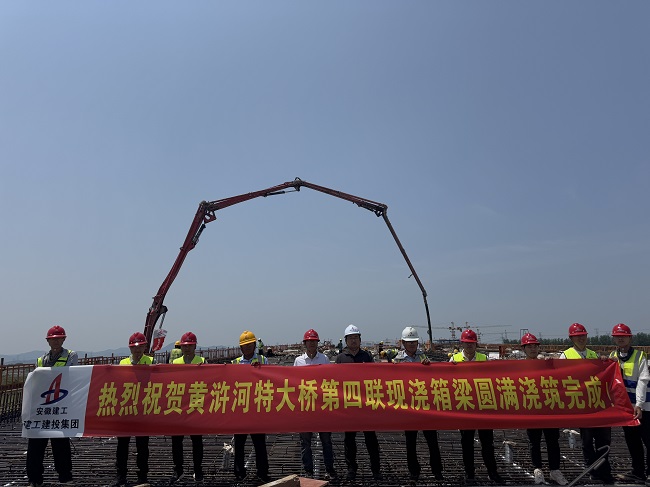 5月30日,由建工建投集團承建的繁昌區G236項目二標段黃滸河特大橋第四聯現澆箱梁圓滿澆筑完成,這一突破性進展為項目后續橋梁貫通奠定了堅實基礎。