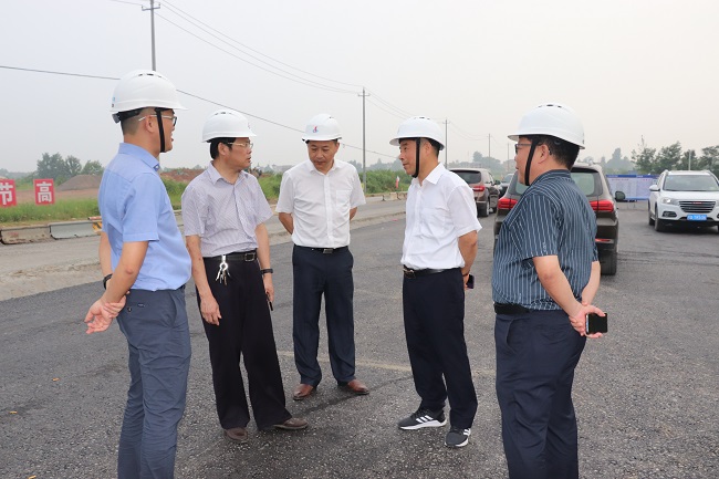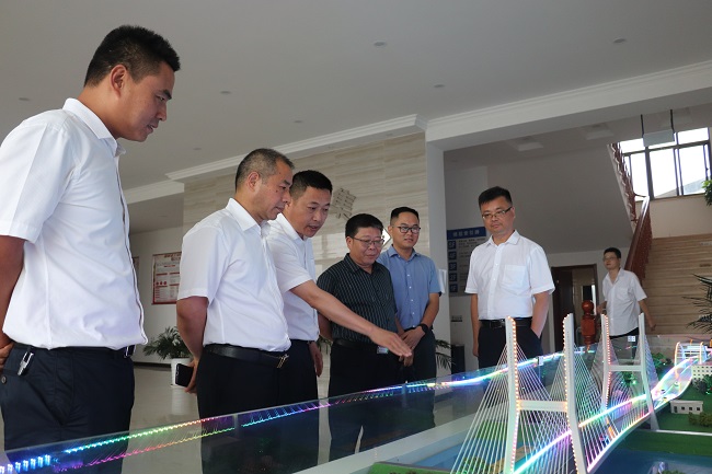 徐文聯一行首先來到S211PPP項目駐地,實地查看了項目部的黨建及企業文化建設情況,隨后赴G347PPP項目瀝青施工作業點及楊灣河特大橋主墩現場調研項目施工進度。調研中,徐文聯分別聽取了S211PPP、G347PPP項目負責人關于工程概況、黨建工作、疫情防控、防洪防汛等工作匯報。
