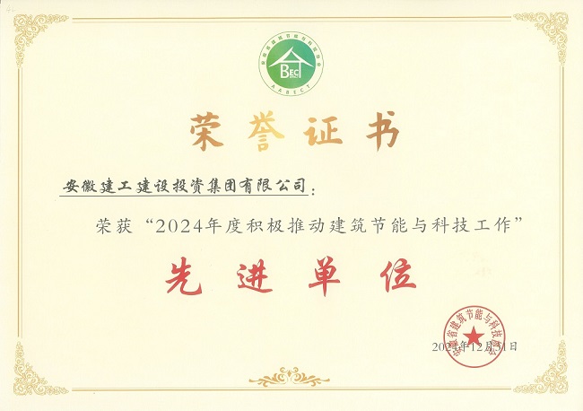 近日,建工建投集團喜獲安徽省建筑節能與科技協會頒發的“2024年度積極推動建筑節能與科技工作先進單位”稱號。