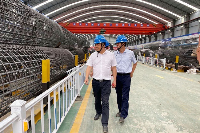 江仲明一行實(shí)地查看了項(xiàng)目的標(biāo)準(zhǔn)化場(chǎng)站建設(shè)和一線施工現(xiàn)場(chǎng)進(jìn)展情況,認(rèn)真聽取了項(xiàng)目負(fù)責(zé)人關(guān)于項(xiàng)目節(jié)點(diǎn)工程、重難點(diǎn)工程等方面的匯報(bào)。