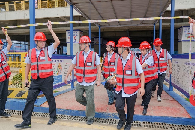 活動緊扣“人人講安全,個個會應急——查找身邊安全隱患”主題,通過組織綜合應急演練,真實模擬工人從移動腳手架墜落事故場景。演練中,項目部迅速啟動應急預案,通訊聯絡、安全警戒、醫療救護、搶險救援、綜合協調及后勤保障等各組響應迅捷、協同高效、處置專業,全面檢驗并提升了警戒疏散、傷員救援、險情控制等關鍵環節處置能力,圓滿完成了演練任務。