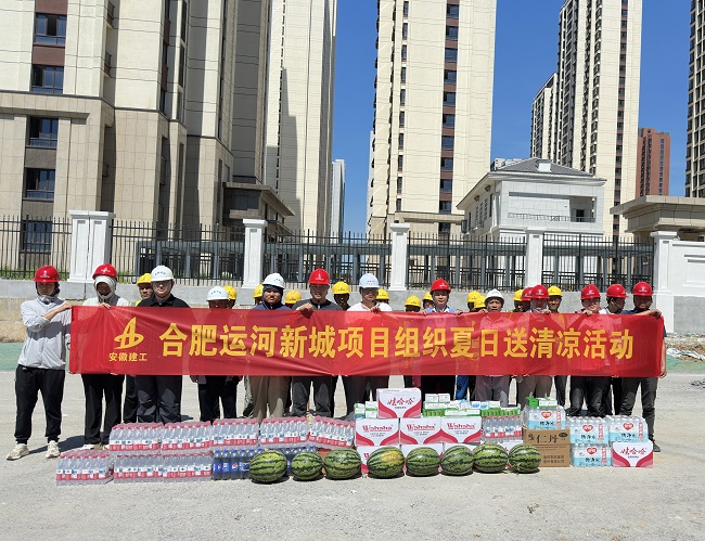 近日,合肥市楊崗路、幸三路等2條道路項(xiàng)目、S20長豐至固始高速公路霍邱至皖豫界段02標(biāo)項(xiàng)目、合肥運(yùn)河新城項(xiàng)目積極組織開展“送清涼”活動(dòng),向奮戰(zhàn)在高溫一線的工友致以誠摯慰問,并送上西瓜、綠豆、礦泉水及防暑降溫藥品等實(shí)用物資。