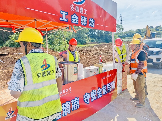 為保證高溫天氣一線工人的健康安全,G328項目合理調整作業時間,積極落實項目夏季防暑降溫舉措,為現場施工人員購買防暑降溫藥,配備綠豆湯,加強防暑知識宣傳,組織施工人員學習防暑降溫的基本常識和中暑急救辦法,把防暑降溫工作落實到實處,鼓舞了一線人員作業積極性,營造和諧工作氛圍。
