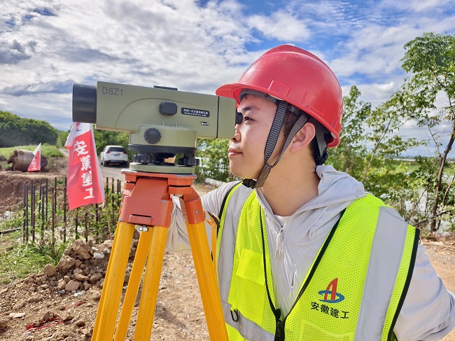 在高溫考驗下,寧九高速項目堅守崗位。測量員在烈日下專注調試儀器,進行四等水準靜態測量,保障工程數據精準,為下一步工作的有序推進做足準備。截止目前,寧九高速項目拌和站建設工作已全面完成,料倉拌料區建設完成100%,拌合樓結構建設100%,辦公區及生活區水電等配套設施已配置齊全。