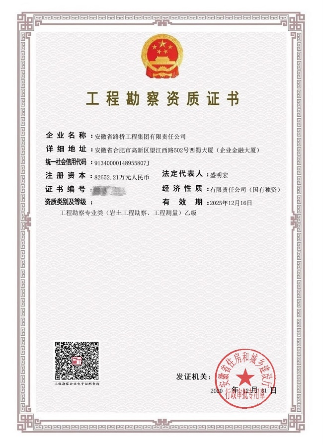日前,經(jīng)省住建廳核準(zhǔn),安徽路橋集團(tuán)獲批工程勘察專(zhuān)業(yè)類(lèi)(巖土工程勘察、工程測(cè)量)兩項(xiàng)乙級(jí)資質(zhì),再次實(shí)現(xiàn)資質(zhì)范圍拓展新突破,填補(bǔ)了公司在工程勘察領(lǐng)域的資質(zhì)空白。