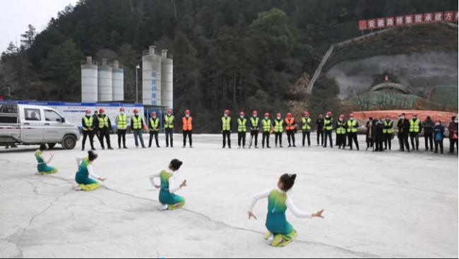 “我們在歙縣挺好,請家人放心,祝全國人民新年快樂……”就地過大年,溫情暖心間。2月4日,歙縣文旅體局組織文藝志愿服務小分隊奔赴黃千高速Ⅱ標蔡坑隧道出口,為留守崗位、就地過年的高速建設者送上了精彩的文藝演出,歌曲、舞蹈、串燒……現場歡歌笑語、掌聲不斷。“能為黃千高速建設出一份力,再苦再累,我們心甘情愿。”在互動環節,主持人隨機采訪高鐵建設者時,許多建設者額都認為,雖然今年積極回應國家就地過年的號召,不能陪家人一起過年,但是奮戰施工一線更能體現出作為一名筑路工人的價值。