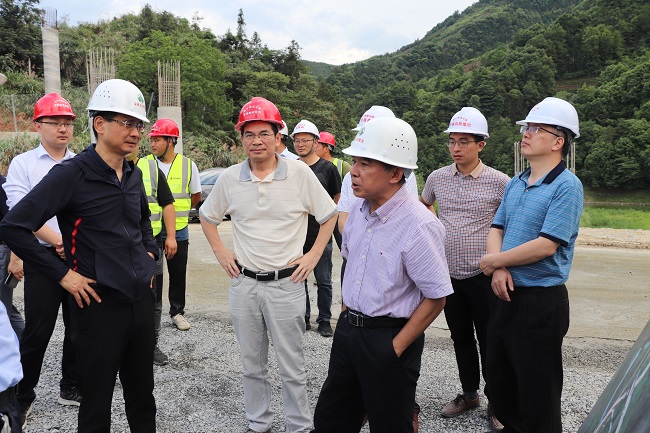 章后忠一行詳細察看了武陽互通橋梁工程施工現場,仔細詢問了項目推進過程中存在的問題和困難,對項目加快推進工程建設取得的成效給予了充分肯定,并重點強調要保證安全生產。他要求:一是要在保證安全前提下,搶在汛期前完成涉水橋墩施工,并持續加大投入,加快生產進度,確保明年年底通車;二是在項目建設過程中,針對高墩施工要不斷加大現場安全管控力度,規范使用梯籠,完善高空作業安全措施,加強吊裝設備管理;三是要提高思想意識,重視環保工作,切實把綠色發展理念以及生態環保要求落到實處。