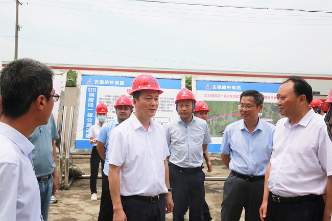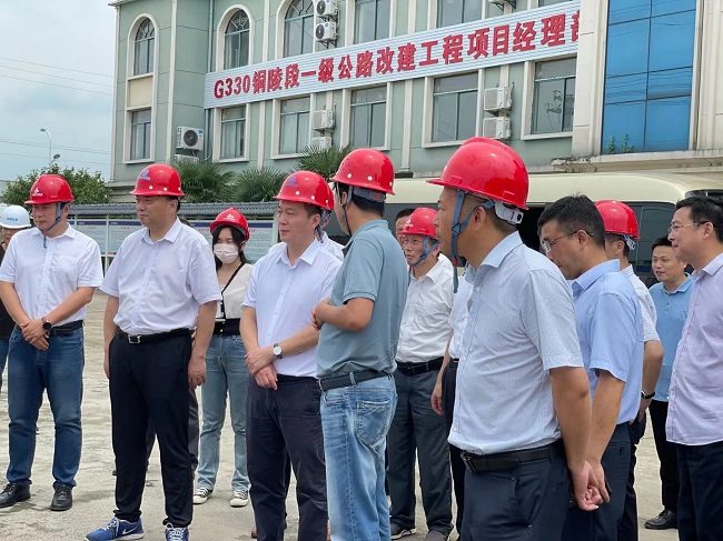 7月8日上午,銅陵市委副書記、市長孔濤蒞臨G330銅陵段一級公路改建工程項目進行調研,銅陵市交通運輸局、發展改革委、自然資源和規劃局、住房城鄉建設局、交投集團等有關負責人,公司總工程師王家林等參加調研。
