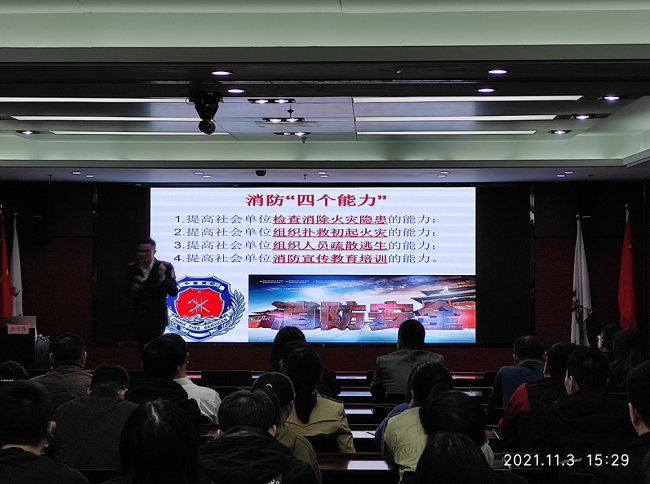 在“11.9”全國消防安全宣傳日來臨之際,為普及消防安全知識,提升消防安全意識,11月3日,公司于8樓會議室舉辦消防安全知識講座。政安防火教育中心張守偉教官應邀授課。