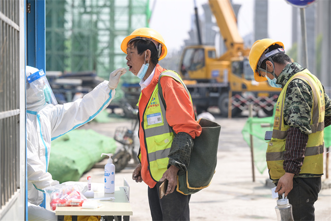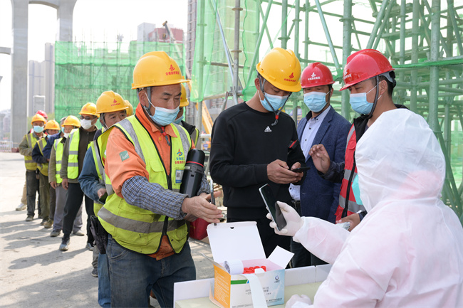 “您好,請出示您的健康碼和行程碼”走進項目現場,項目部嚴格落實項目封閉式管理和單口進出制度。項目部實行施工現場分區管理,各進出口大門配備疫情專管員,每日組織疫情防控專員對全體勞務人員進行雙碼核查、測溫、登記,對于黃碼及行程碼帶“*”人員,及時上報社區,與屬地及主管單位形成聯動。同時,安排專人每日對工人生活區、辦公區、宿舍區等人員聚集場所進行消殺。此外,積極響應政府號召,每周組織兩次全員核酸檢測,確保疫情防控封閉管理、不留死角。