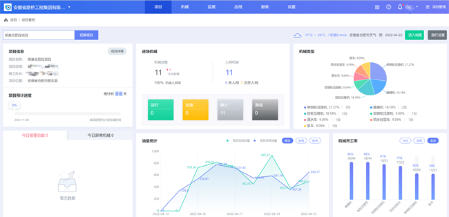 在安徽路橋集團設備租賃公司的監控室,一臺大屏幕引人注目,實時顯示著企業24臺機械的工時、油量等動態數據。“通過指揮官系統,每一臺機械在哪里施工,出現了什么故障,作業時間多長,一目了然。”朱小軍介紹,企業引進開發了機械設備指揮官系統,實現所有路面設備遠程智能化管理,施工管理進一步優化,施工效率明顯提升,油耗成本大幅降低。他表示,下一步企業將加快數字化轉型,對工程機械的進場、施工、調度、結算等全流程進行數字化、智能化重構,實現智能化管理和生產。
