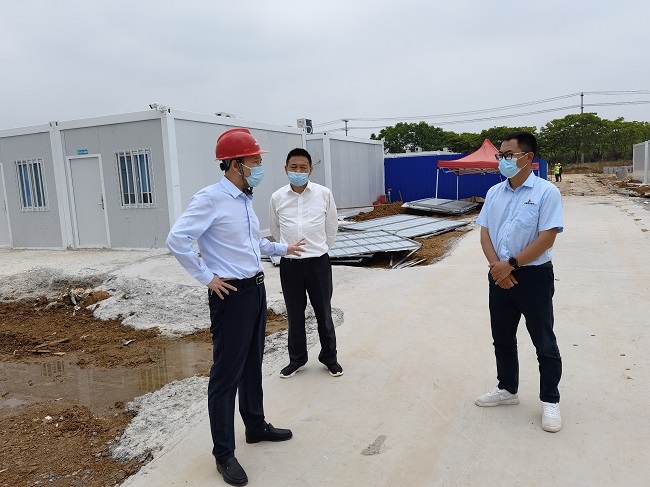 六安東城健康驛站工程是六安市新冠疫情防控應急建設項目,由安徽路橋集團承建,首期960間隔離房已于4月20日按期交付,目前二期工程1200間隔離房正在熱火朝天地施工。盛明宏來到施工現場,查看項目建設情況,研究部署下一步建設工作。盛明宏指出,六安東城健康驛站工程是六安市同期建設的健康驛站中體量規模最大,場地情況最為復雜,施工難度最大,施工周期最短,且同期交付數量最多的項目。所有參建人員克服工期短、工程量大、環境艱苦、疫情防控形勢嚴峻、資源調配難等諸多困難,付出了巨大艱辛與努力,順利完成首期工程建設,展現了國有企業的責任與擔當。盛明宏強調,健康驛站建設是政治任務,所有參建人員務必提高政治站位,加強項目工期、質量、防疫管理,參建單位主要領導要駐點現場、靠前指揮,各單位、各部門全力配合、提供支持,高標準、嚴要求完成建設任務,向六安市交上一份滿意的答卷。