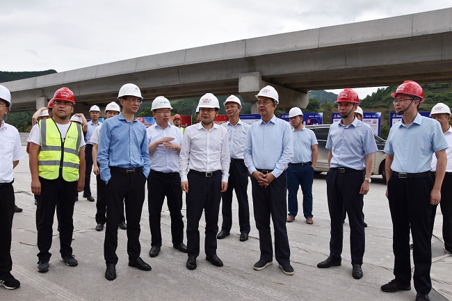 李中、項小龍一行深入黃千高速02標項目全線,實地察看項目整體進展和關鍵控制性工程武陽互通推進情況。在聽取項目建設情況匯報后,李中、項小龍充分肯定了黃千高速02標當前取得的成績。