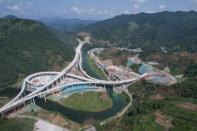 黃千高速全線橋隧比超80%,是目前安徽省橋隧比最高的高速公路。其中,由安徽路橋集團承建的黃千高速02標橋隧比更高達到94%,地形結構復雜,施工難度大。安徽路橋集團在與多家央企同臺競技中,率先實現全線首個隧道全部貫通、全線首個梁板預制完成、全線首個半幅貫通等多個節點目標。