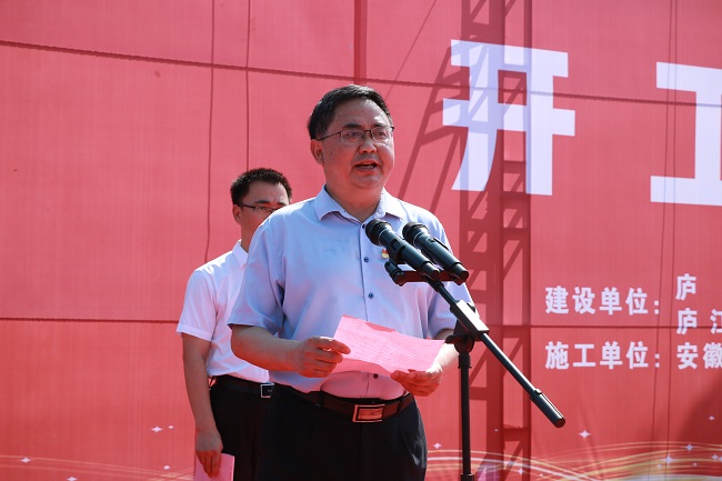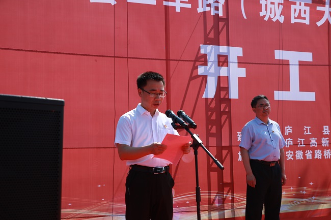 劉慶春主持開工儀式,簡要介紹廬江縣二軍路工程項目,并對各參加單位及項目建設(shè)提出殷切期許。