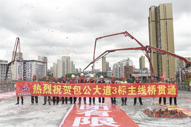 7月6日上午9時許,經過連續16個小時的徹夜奮戰,隨著第59聯頂板現澆箱梁的澆筑完成,由安徽路橋集團承建的包公大道(二十埠河-龍興大道)道路工程-3標段,歷時10個月順利完成主線橋合龍,至此包公大道主線橋全線貫通!