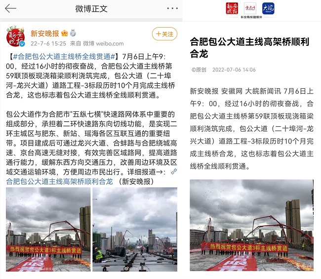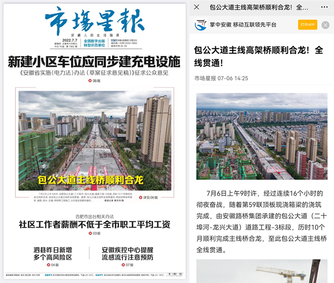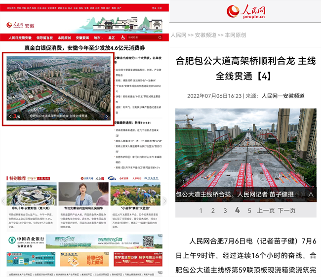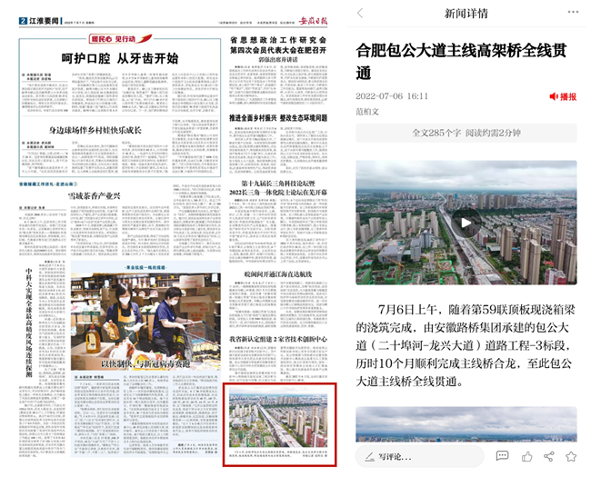 隨后,學習強國、人民網(wǎng)、央廣網(wǎng)、《安徽日報》、中安在線、《市場星報》、《合肥晚報》、《新安晚報》、安徽網(wǎng)等一批主流媒體重點報道路橋集團建設成果,網(wǎng)易、新浪、騰訊等平臺對稿件積極轉(zhuǎn)載。