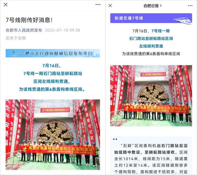 7月16日上午,隨著“拼搏號”盾構機刀盤緩緩破土而出,由安徽路橋集團承建的合肥軌道交通7號線石門路站至耕耘路站區間左線貫通,為該線貫通的第6條盾構單線區間。
