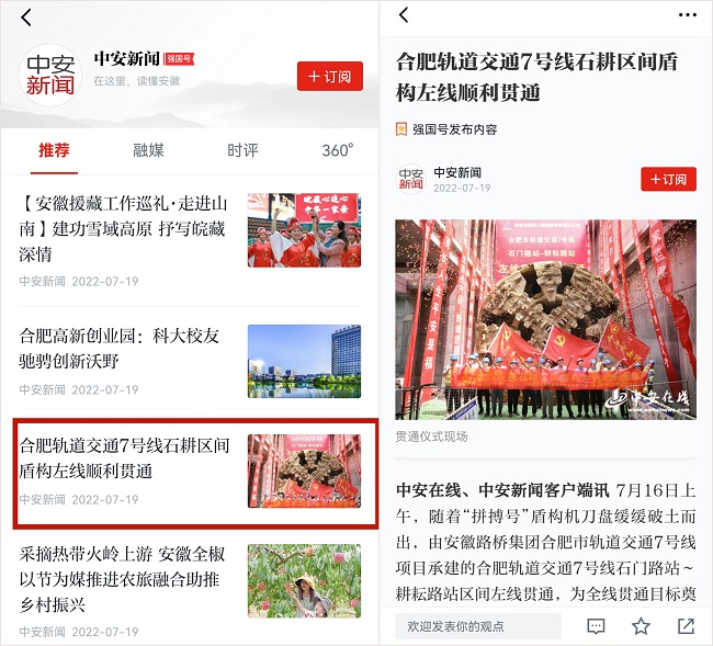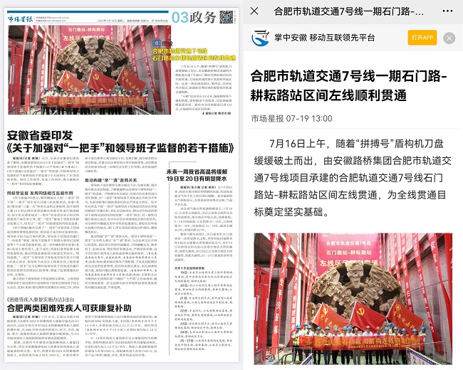 “合肥市人民政府”官方賬號、《合肥日報》官方微信、中安在線及其所屬新媒體平臺、強國號,《市場星報》及所屬新媒體客戶端對這一節點重點關注,對路橋集團建設者的良好風貌進行細致描繪。