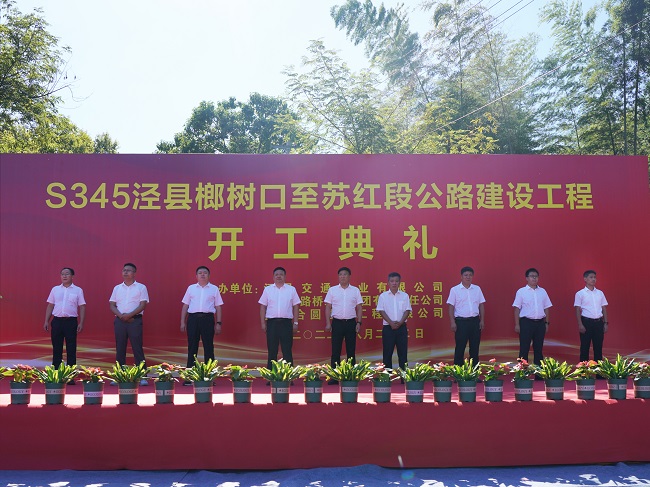 8月22日上午9時18分,S345涇縣榔樹口至蘇紅段公路建設工程舉行開工儀式。涇縣縣委書記施懷中出席并宣布項目開工。涇縣人大常委會主任詹善清,政協主席涂順,縣委常委、政法委書記、常務副縣長馬文波,公司黨委書記、董事長任杰等有關領導出席開工儀式。