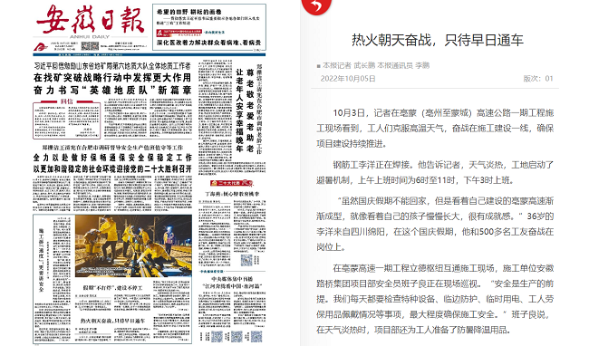 《安徽日報》:熱火朝天奮戰(zhàn),只待早日通車