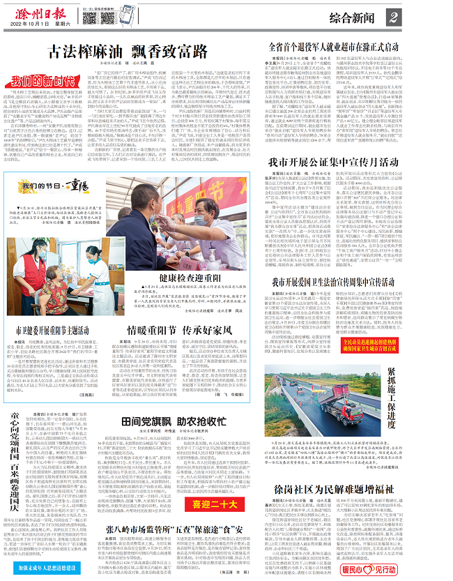 《滁州日報》以圖片新聞形式,記錄下路橋集團滁天高速建設(shè)者國慶假期的施工掠影,介紹項目意義。